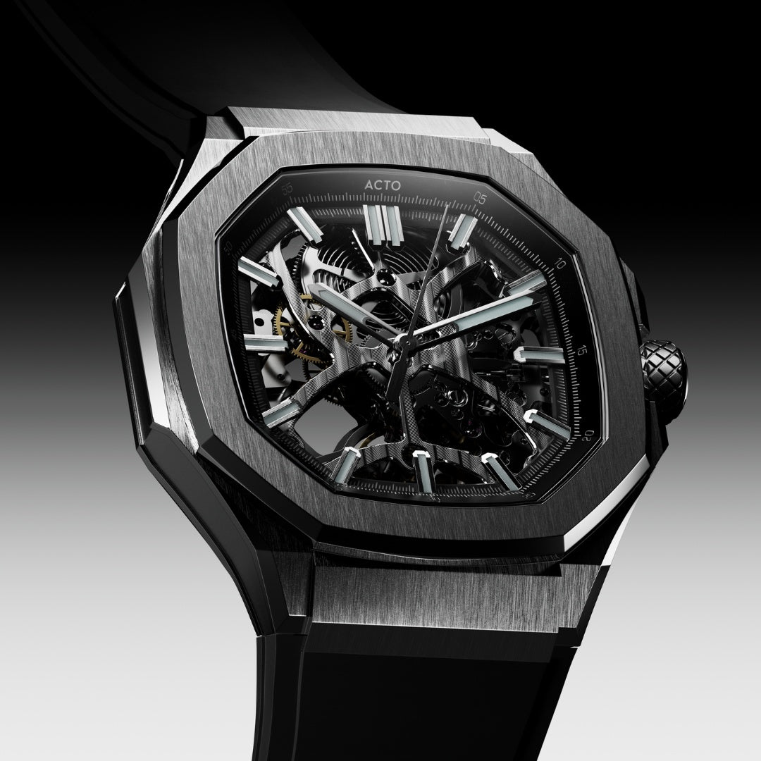 As pulseiras UltraRubber™ da ACTO, desenvolvidas em FKM Rubber, unem durabilidade excepcional ao conforto absoluto. O material maleável garante um ajuste anatômico perfeito ao pulso, enquanto a estrutura otimiza a circulação de ar. Alta respirabilidade e resistência para o uso diário.