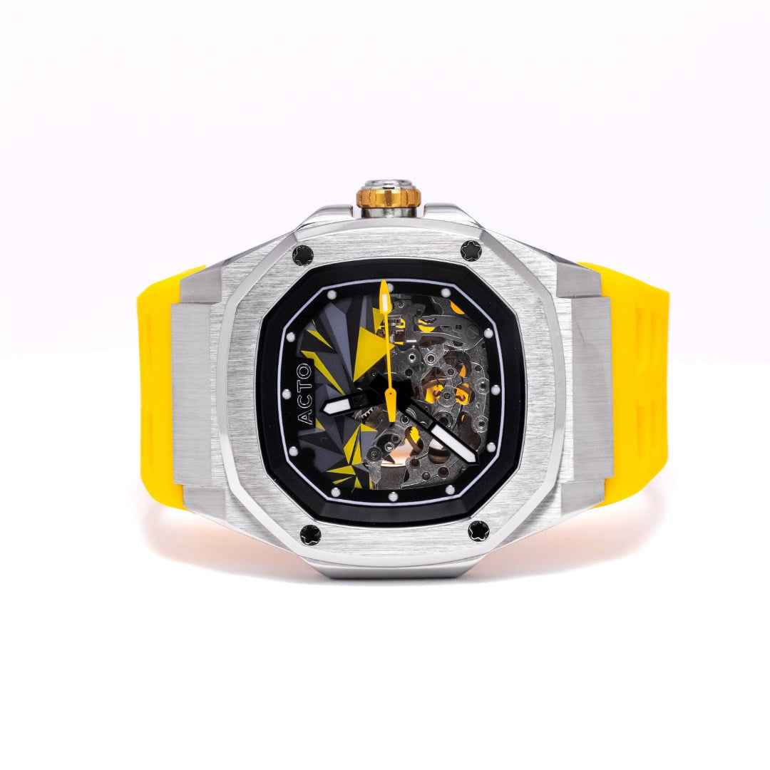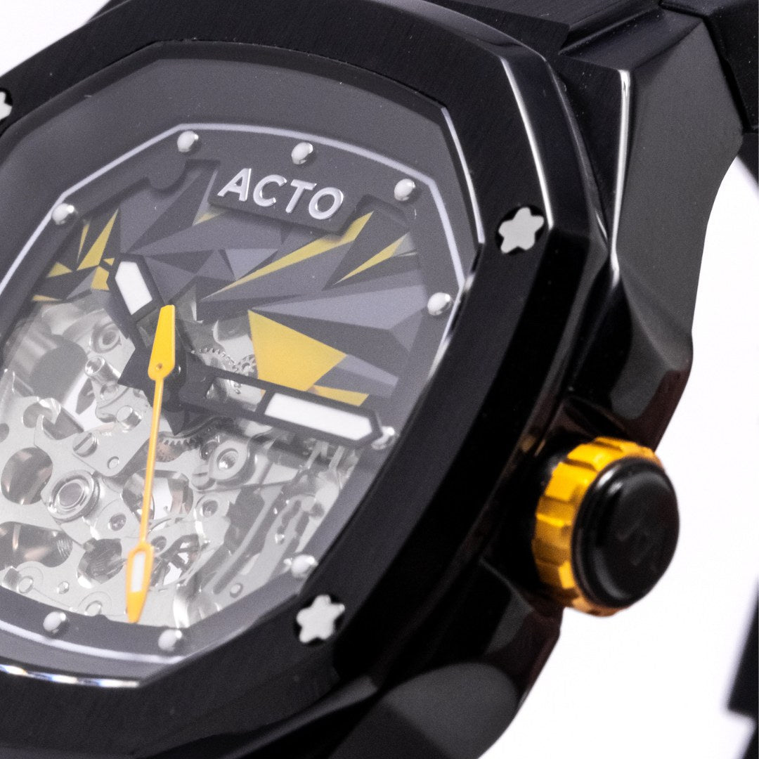 Com o lançamento do modelo A003B, a ACTO mais uma vez aliou estilo e sofisticação de maneira exemplar. Inspirado pela intensa paixão de Erich Shibata por relógios de alta qualidade e pelo compromisso contínuo da ACTO com a excelência, esse relógio rapidamente se destacou como uma verdadeira expressão de personalidade. A recepção do mercado foi extraordinária, refletindo a perfeita harmonia entre a arte do design e a mestria técnica.
