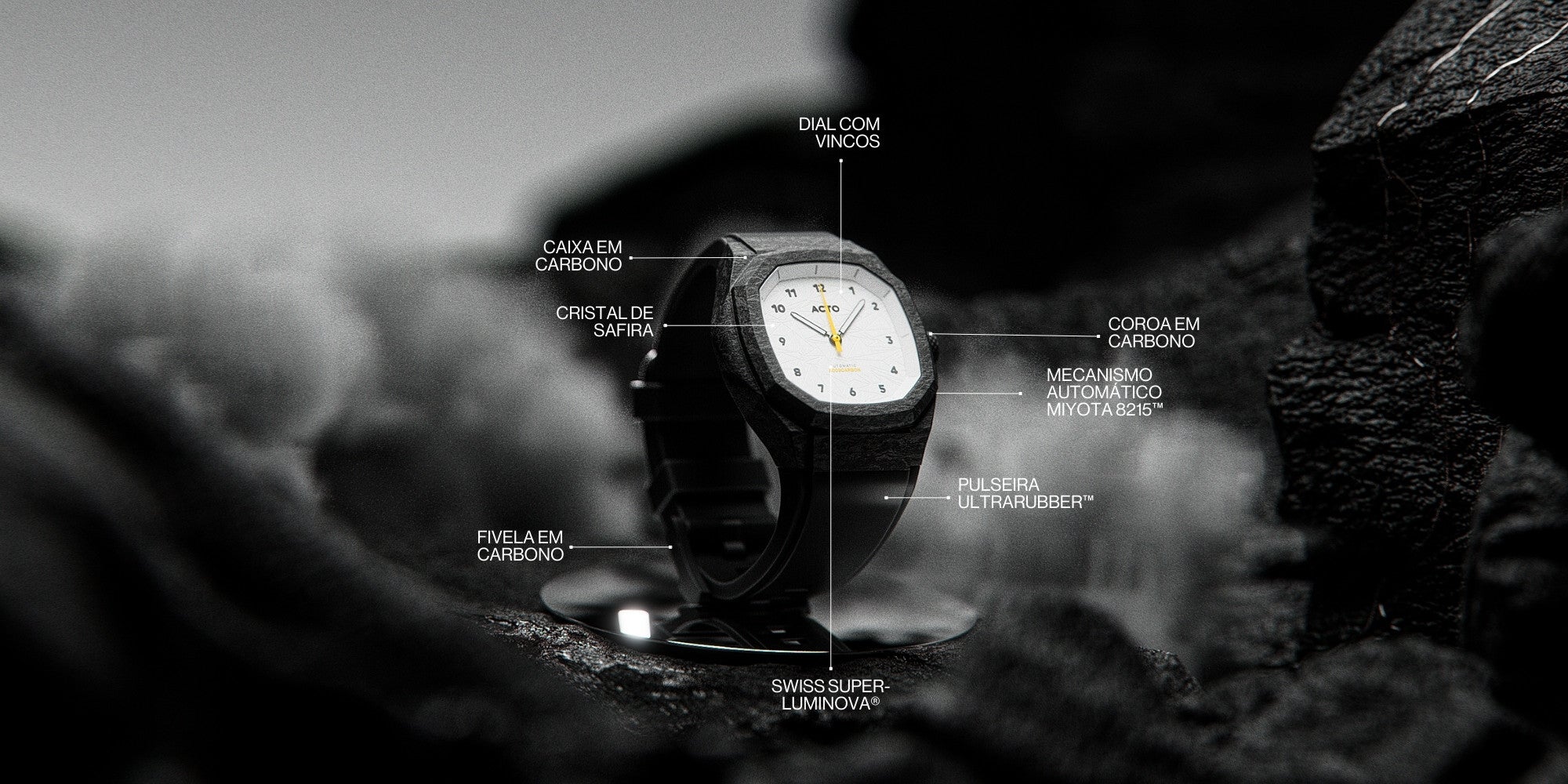 Desenhado por Erich Shibata, em parceria com a ACTO, é o primeiro relógio brasileiro feito de carbono: um verdadeiro símbolo de conquista e inovação.