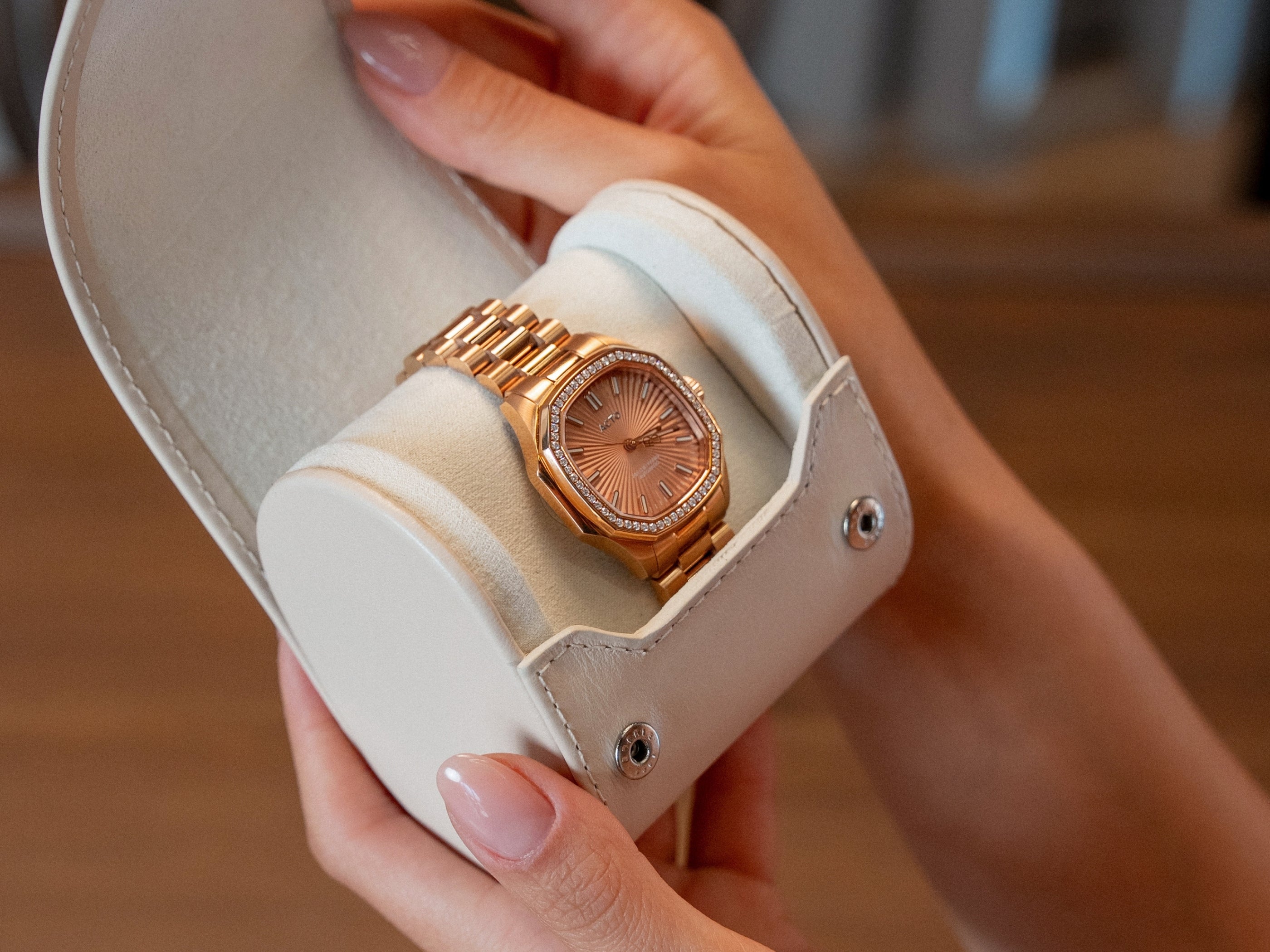 O PB012 nasce do encontro entre duas visões: a precisão da ACTO e a arte de Patrícia Bonaldi, da PatBO. O resultado é um relógio-joia que une técnica, feminilidade e trabalho artesanal em uma peça criada para marcar momentos que importam.