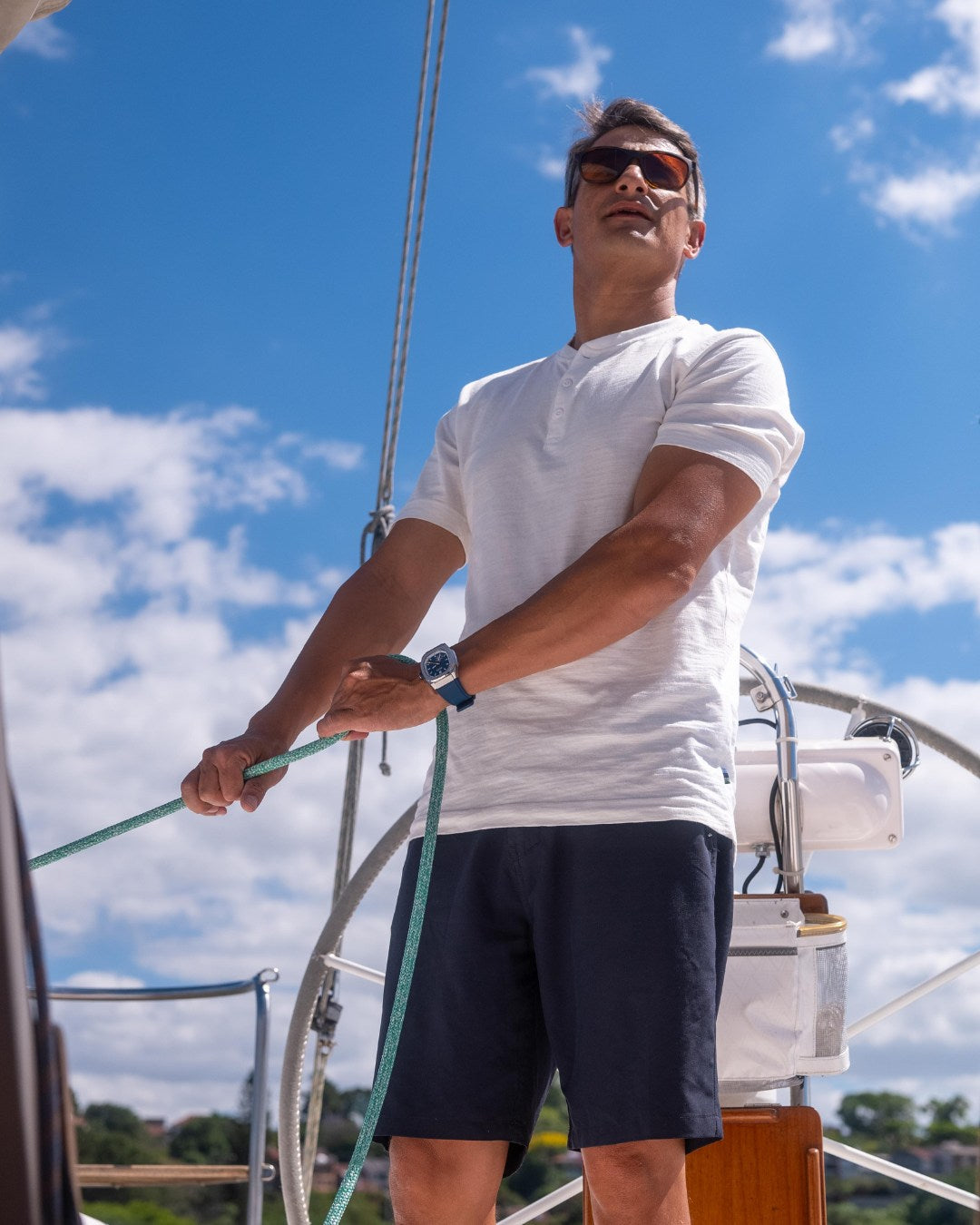 Na água ou em terra firme, o AC01 Navigator combina elegância e funcionalidade prática. Perfeito tanto para ocasiões formais quanto para ambientes ao ar livre.