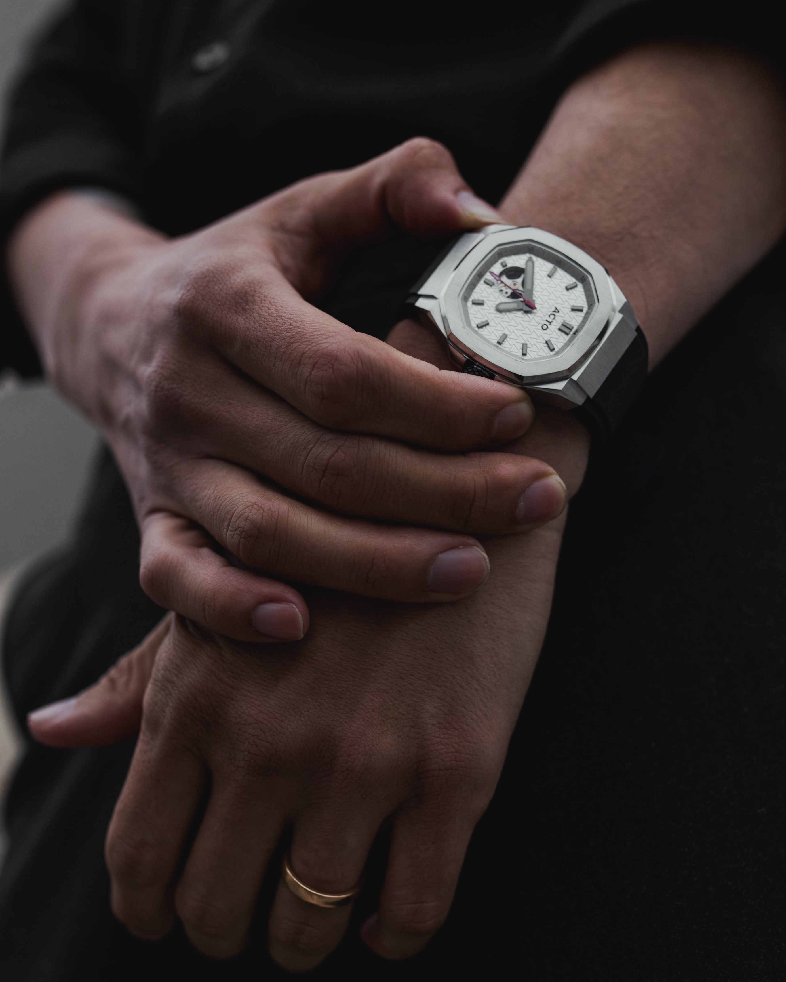 O AC01 Phantom é um relógio que combina sofisticação e robustez, projetado para aqueles que buscam um acessório com personalidade, ainda assim intimista.