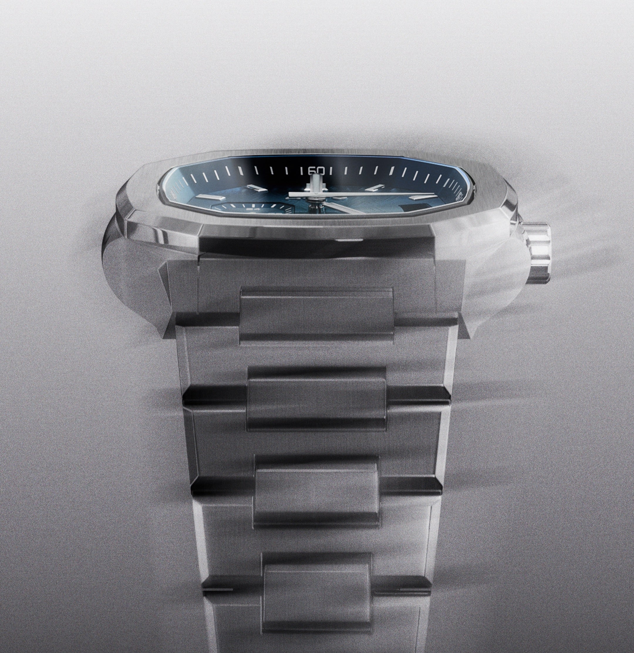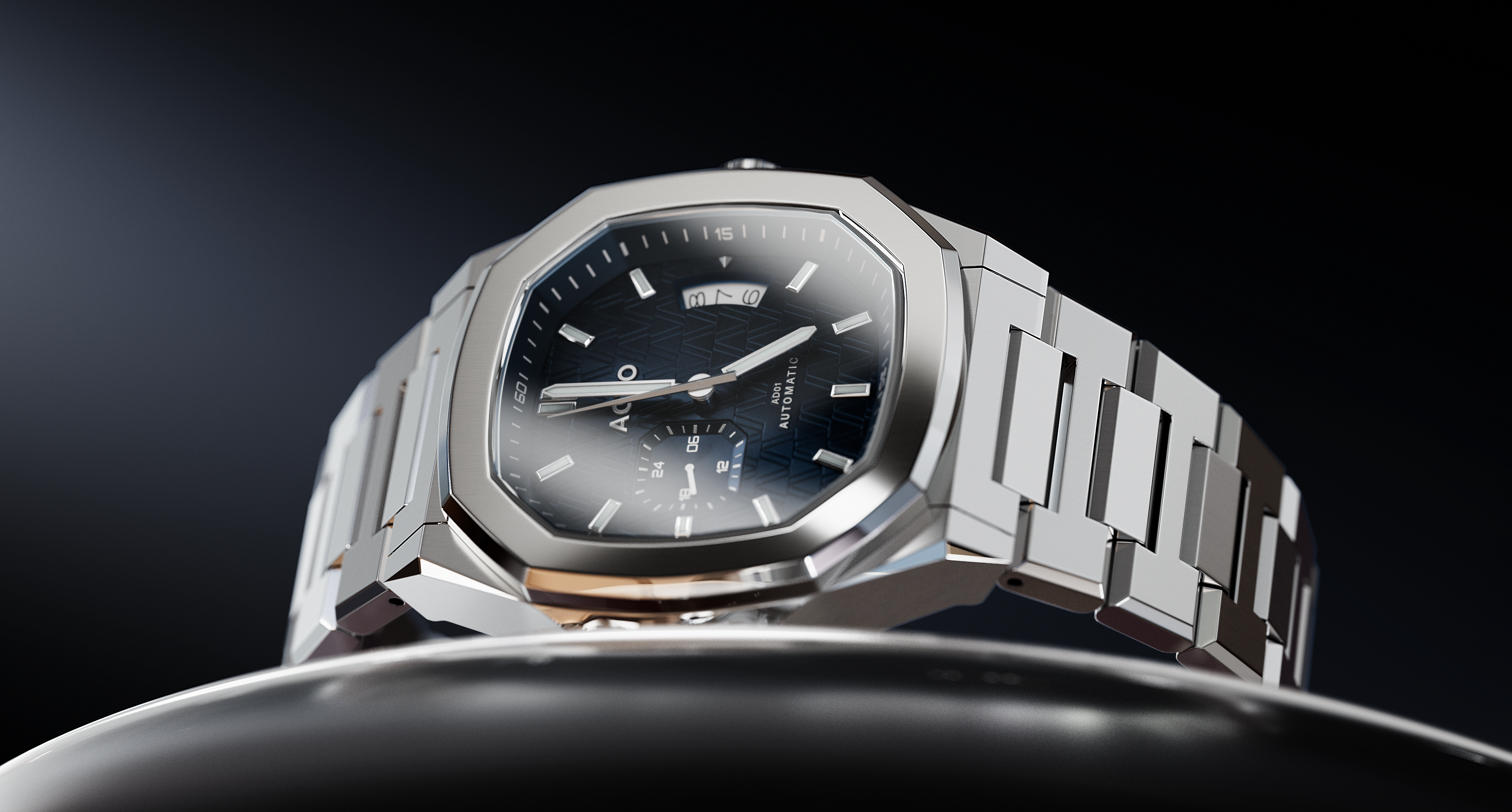 Equipado com o calibre Miyota 8217™, o AD01 entrega até 42 horas de reserva de marcha, combinando precisão e confiabilidade.