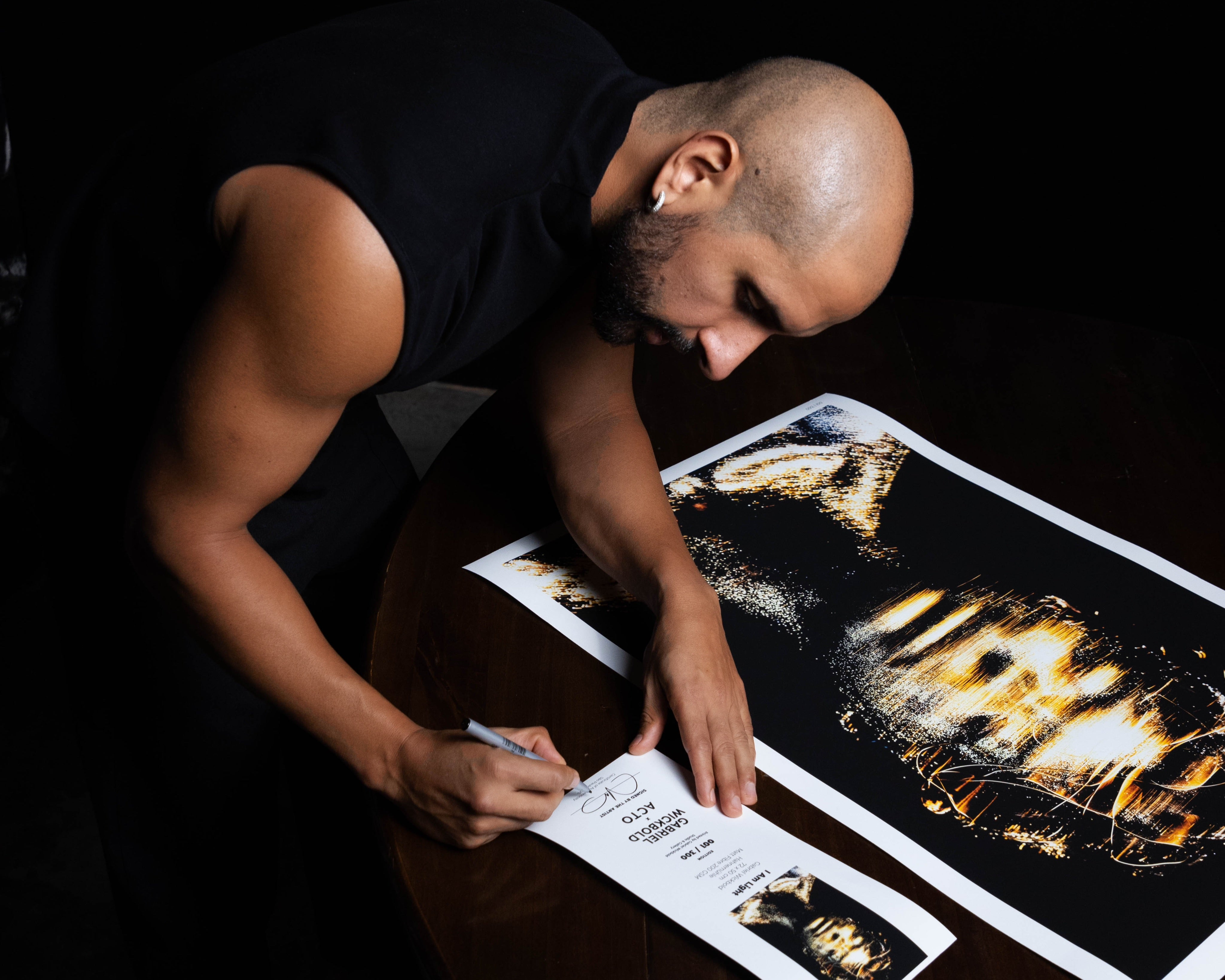 Cada unidade da coleção será acompanhada por uma obra criada pelo próprio Gabriel - uma peça numerada e assinada, que certifica o seu exemplar.
